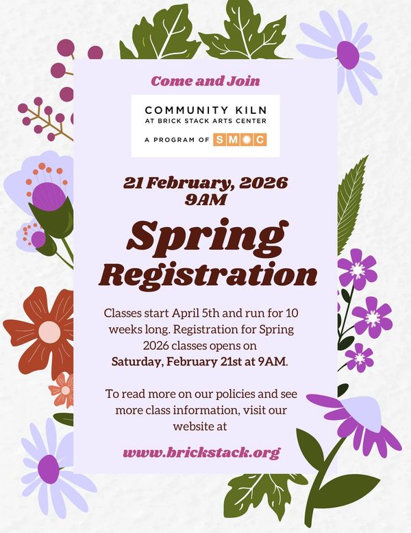 Our Spring programs are 10 weeks long and includes one, 25 lb. bag of clay, firing and glaze costs and access to all open studios. To view hours click the "open studio hours" tab.